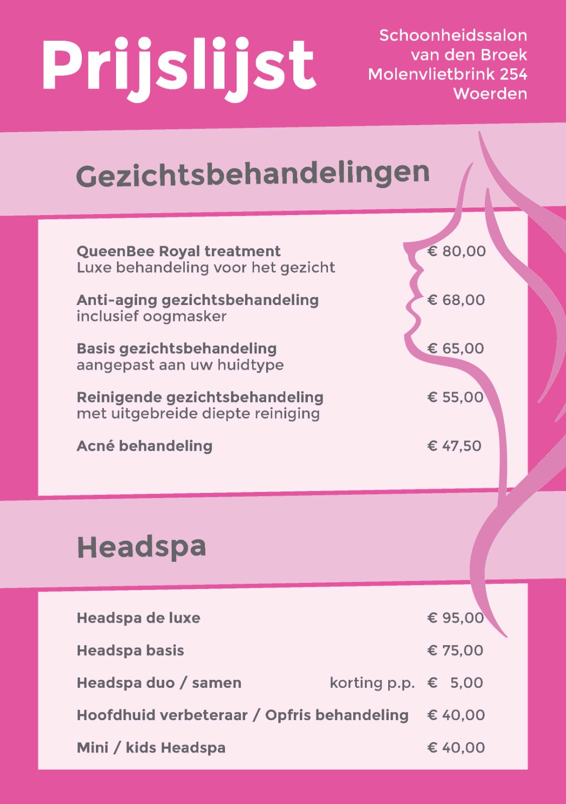 we bieden verschillende headspa behandelingen aan, al vanaf € 40,-